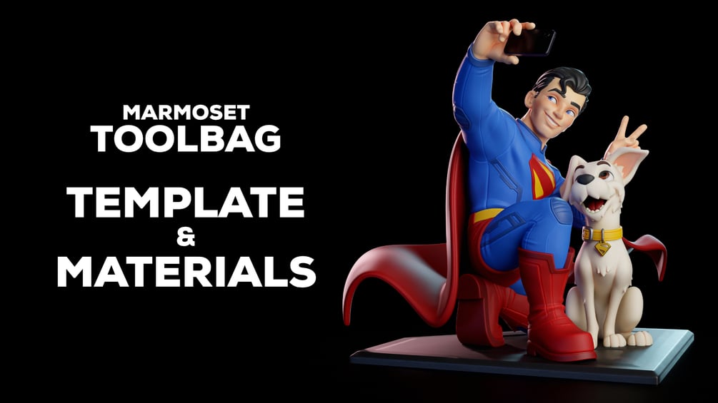 Note: This scene is a starting point. Some adjustments may be needed to match your sculpt. The images and videos in the gallery were rendered using this template (Superman and Krypto not included with the package). This scene was created with Ray Tracing. Performance can be greatly reduced with non-RTX GPU's.